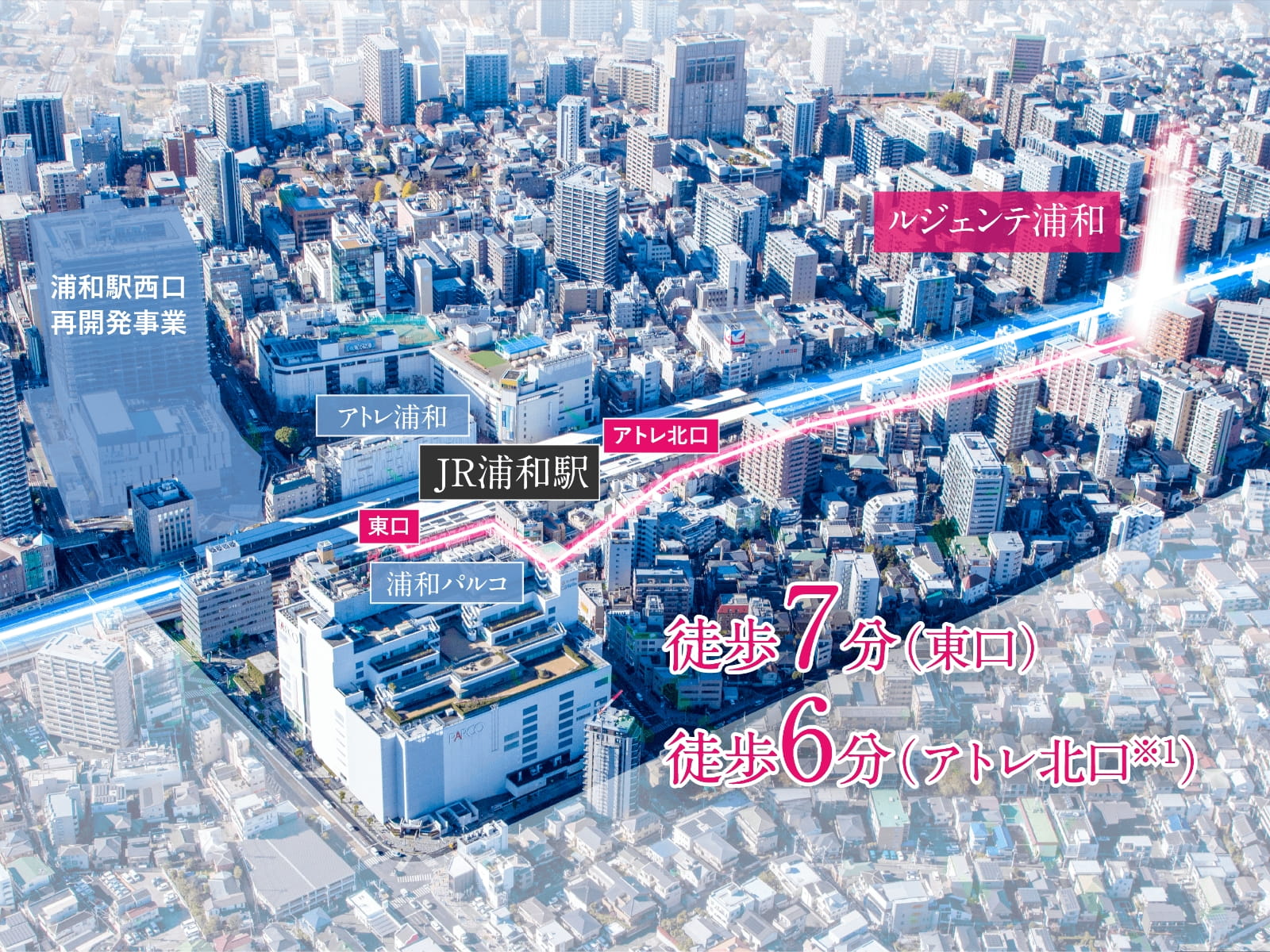 オンもオフも充実する都心主要駅とダイレクトにむすび、4つの大型商業施設が立ち並ぶJR「浦和」駅へ徒歩7分。