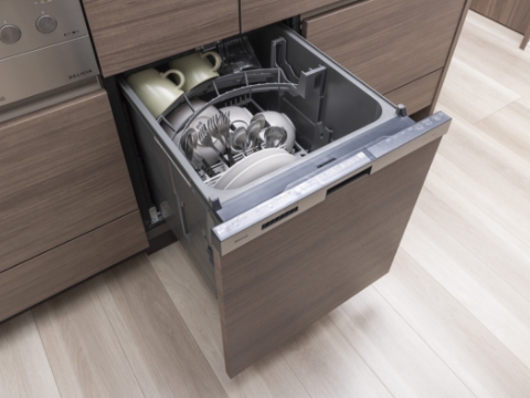 キッチンと調和するデザインが特徴。洗浄機能を高めたサークルラックや押すだけクイックスタート機能も付属しています。