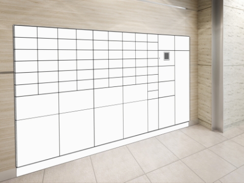 非接触キー対応のメールボックス一体型宅配ロッカー。メールボックスの開錠、宅配荷物の受取が住戸キーのみで行えます。